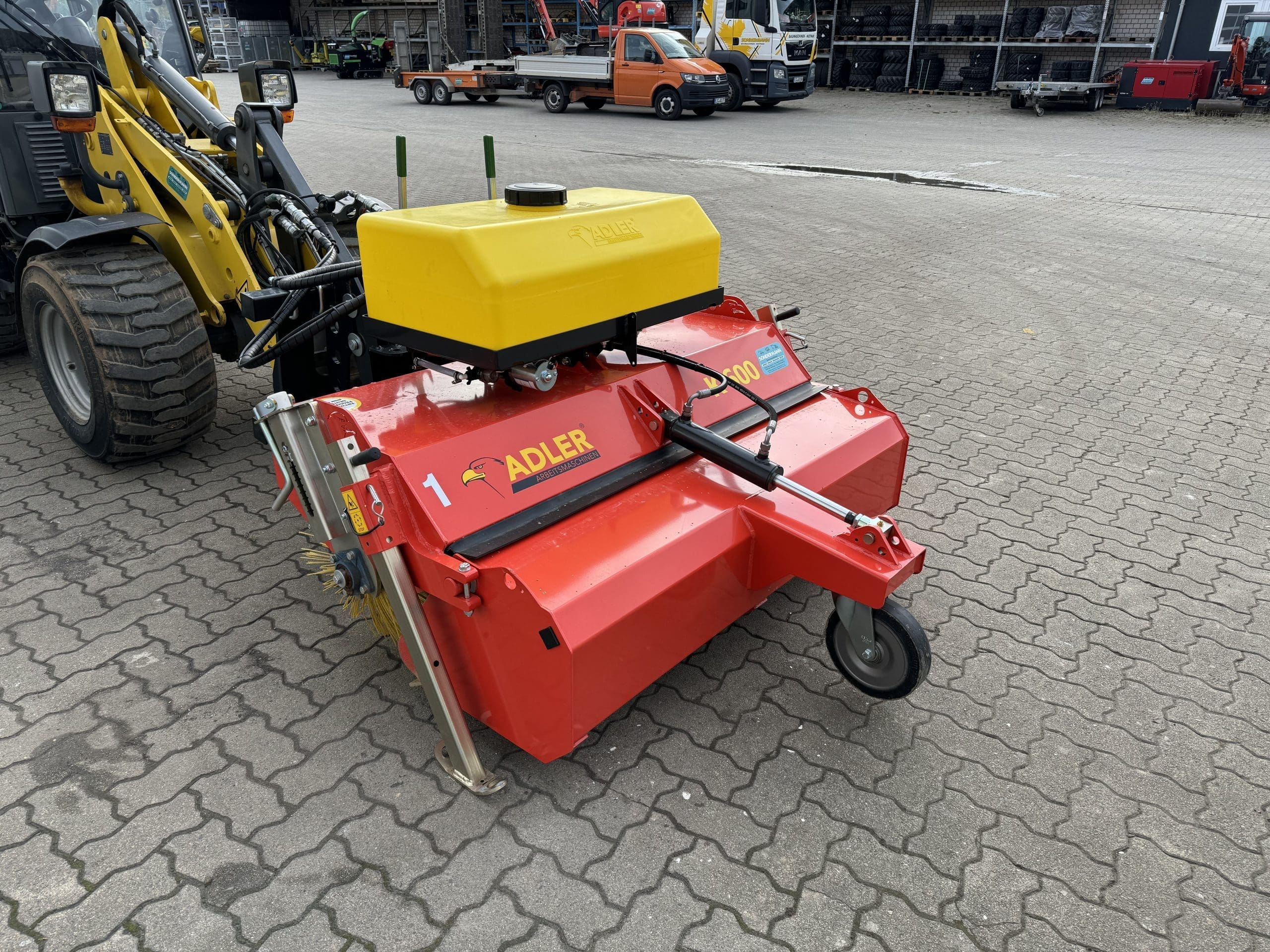 Die Adler K600 ist eine leistungsstarke Kehrmaschine, die für eine effiziente Reinigung von großen Flächen entwickelt wurde. Mit ihrem robusten Design und zuverlässigen Leistung bietet sie eine ausgezeichnete Kehrkraft bei gleichzeitig einfachem Handling, ideal für den Einsatz auf Baustellen, in Lagerhallen oder auf Straßen.