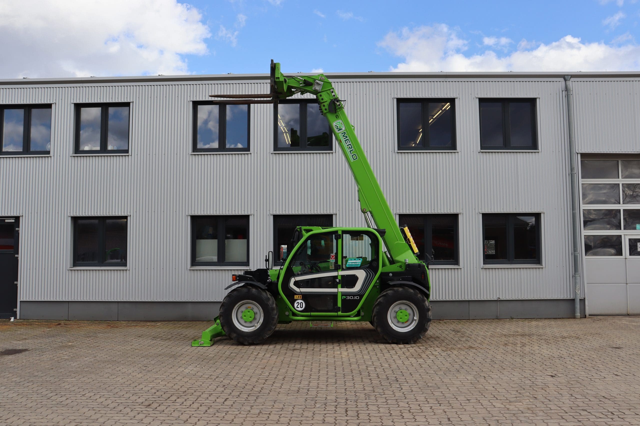 Dank seines stufenlosen hydrostatischen Antriebs lässt sich der Merlo 30.10 präzise steuern, während der permanente Allradantrieb für optimale Traktion auf jedem Untergrund sorgt. Die geräumige Kabine mit ergonomischen Bedienelementen gewährleistet hohen Komfort und Sicherheit für den Fahrer.