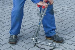 - Problemlos können die Klingen bei altem Pflaster mit dem Hammer in die Fugen eingetrieben werden.